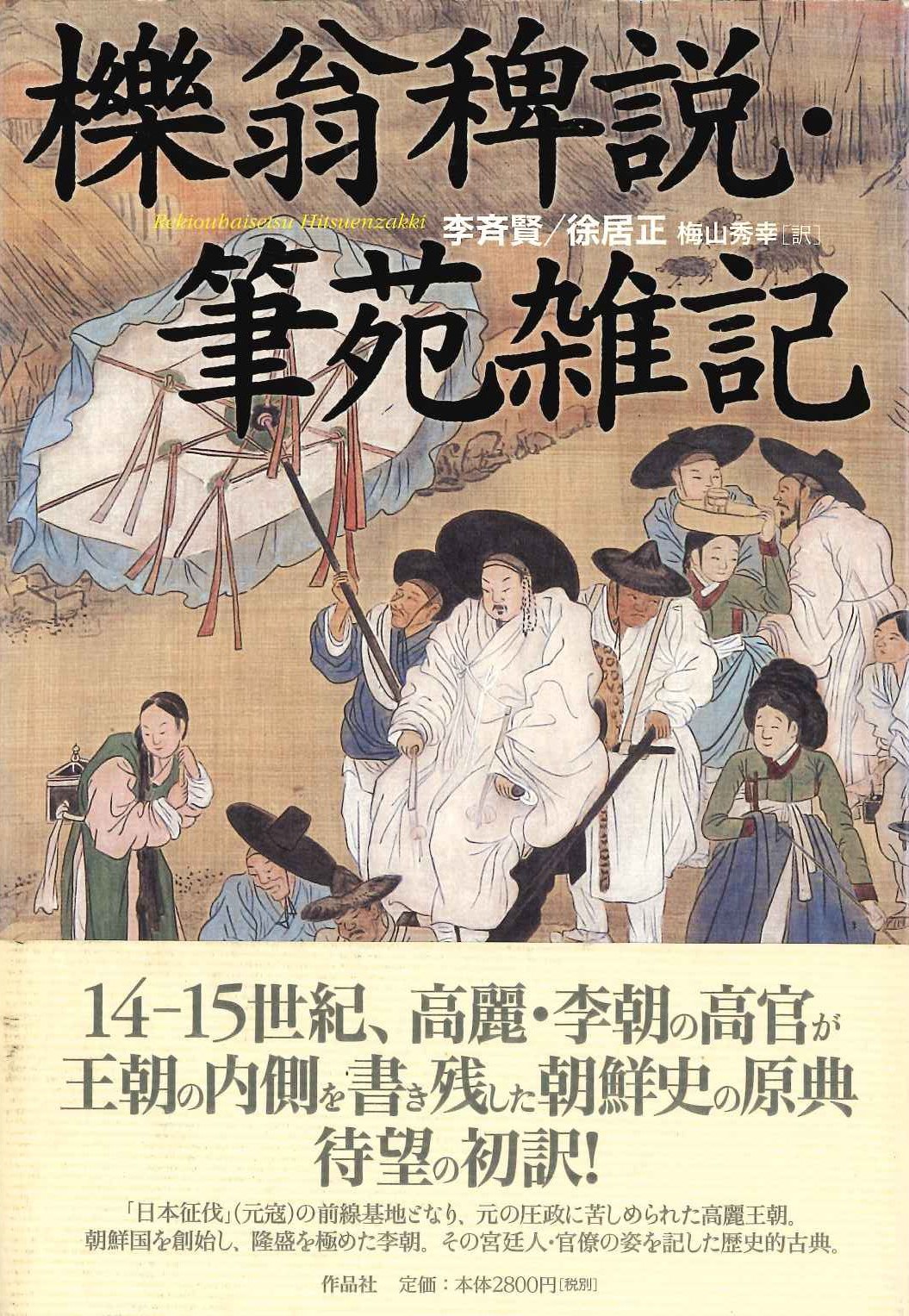日本 櫟翁碑説・筆苑雑記 注文する 日本櫟翁碑説・筆苑雑記著者李斉賢 徐居正著 梅山秀幸訳出版社作品社出版年月日2011.03価格¥3,080ページ数490ISBN番号9784861823244 説明高麗・李朝の高官が書き残した朝鮮史の原典、待望の初訳。「日本征伐」=元寇の前線基地となり、元の圧政に苦しめられた高麗王朝。朝鮮国を創始し、隆盛を極めた李朝。その宮廷人・官僚の姿を記した歴史的古典。 ※出版年が古いので新本ですがヤケ・シミ・痛みがございます。