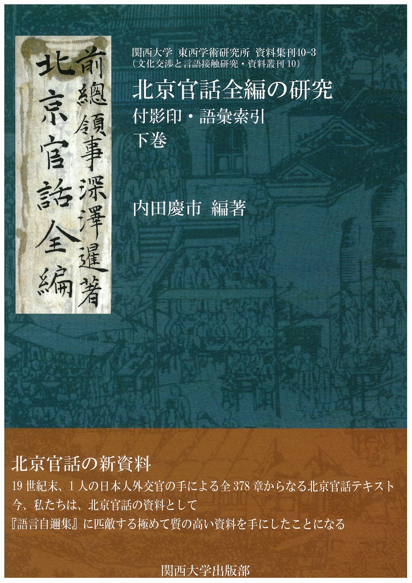 - 19世紀末に日本人の領事、深澤暹が編集した『北京官話全編』は、全378章からなる北京語研究の極めて重要な資料である。今回、それを完全影印し、研究論文および全語彙索引を付して三巻本として上梓するが、本書はその下巻で研究論文と語彙索引を収めた。