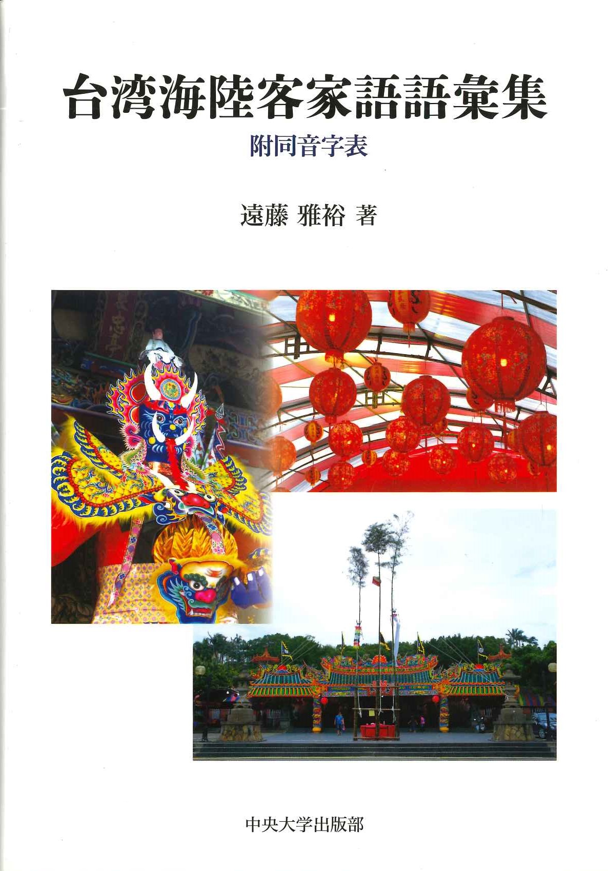 - 本書は、台湾客家【はっか】語の1つである海陸客家語について10年にわたる調査を行なった成果の一部で あり、中国語方言全般や周辺諸言語の研究にも資するものである。客家語とは中国語方言の1つで、中国南 部の広東省東部を中心に形成され、4000万以上の人々に使用されている。このことばは移民とともに台湾に つたわり、現在の使用人口は200万余りであると考えられる。本書の特色は以下の6つとなる。(1)項目は 5900余。(2)語を意味・場面に基づいて配列。(3)音声はIPA表記。(4)名詞には可能な範囲で量詞を付してい る。(5)必要に応じて例文を付した。(6)同音字表を付した。