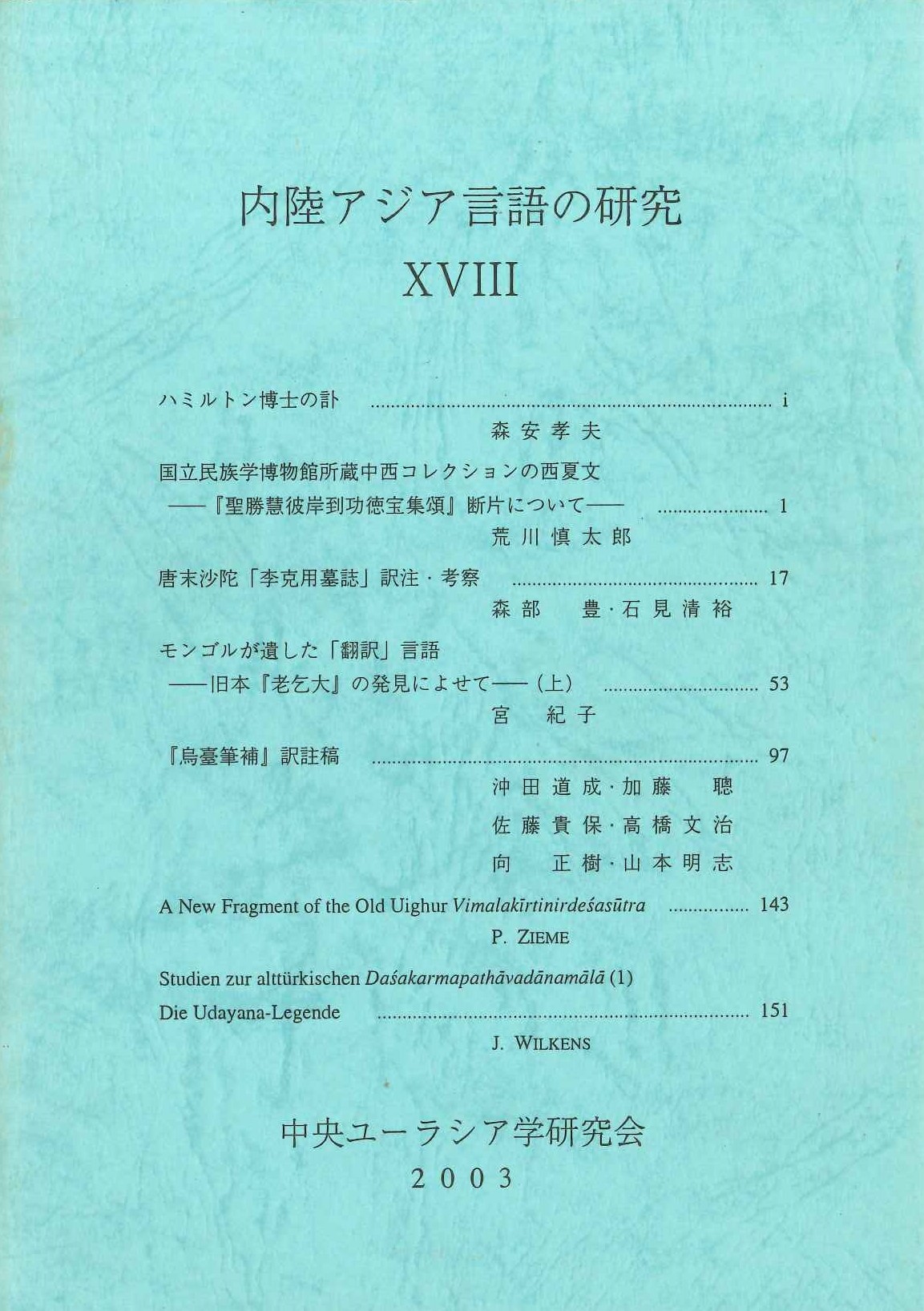 日本 内陸アジア言語の研究18 注文する 日本内陸アジア言語の研究18出版社中央ユーラシア学研究会出版年月日2003.08価格\1,000ページ数185説明※出版年が古いので新本ですがヤケ・シミ・痛みがございます。