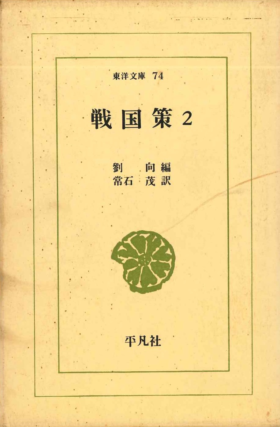 日本古書 戦国策2(東洋文庫) 注文する 日本古書戦国策2(東洋文庫)著者劉向編 常石茂訳出版社平凡社出版年月日1966.09価格¥2,530ページ数294説明秦の統一に先立つ戦国時代,生き残りに腐心する諸国の王たちに,巧みな弁舌で合従連衡を説いてまわる遊説家たちの記録。詳しい注に加え,各種版本の文言を挿入。第2巻は,遊説諸国のうち,斉(続き)・楚・趙・魏(部分)。