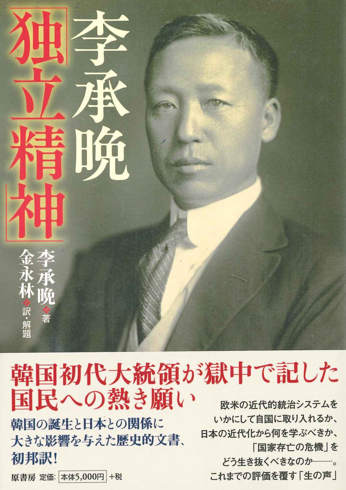 日本 李承晩「独立精神」(普及版) 注文する 日本李承晩「独立精神」(普及版)著者李承晩著 金永林訳・解説出版社原書房出版年月日2024.02価格\5,500ページ数400ISBN番号9784562073986説明韓国の誕生と日本との関係に影響を与えた歴史的文書、初邦訳。欧米の国民国家・近代的統治システムをいかにして韓国に導入できるか、大戦争時代を国としてどう生き抜くべきなのかを問うている。 ※『李承晩「独立精神」』(明治百年史叢書)の普及版