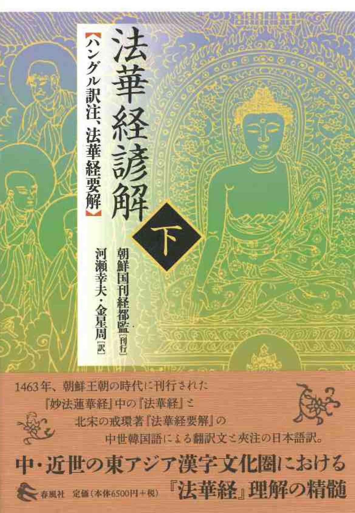 日本 法華経諺解 下 ハングル訳注、法華経要解 注文する 日本法華経諺解 下 ハングル訳注、法華経要解著者朝鮮国刊経都監刊行 河瀬幸夫 金星周訳出版社春風社出版年月日2018.01価格¥7,150ページ数430ISBN番号9784861105777 説明1463年、朝鮮王朝の時代に刊行された『妙法蓮華経』中の『法華経』と北宋の戒環著『法華経要解』の中世韓国語による翻訳文と夾注の日本語訳。 中・近世の東アジア漢字文化圏における『法華経』理解の精髄。