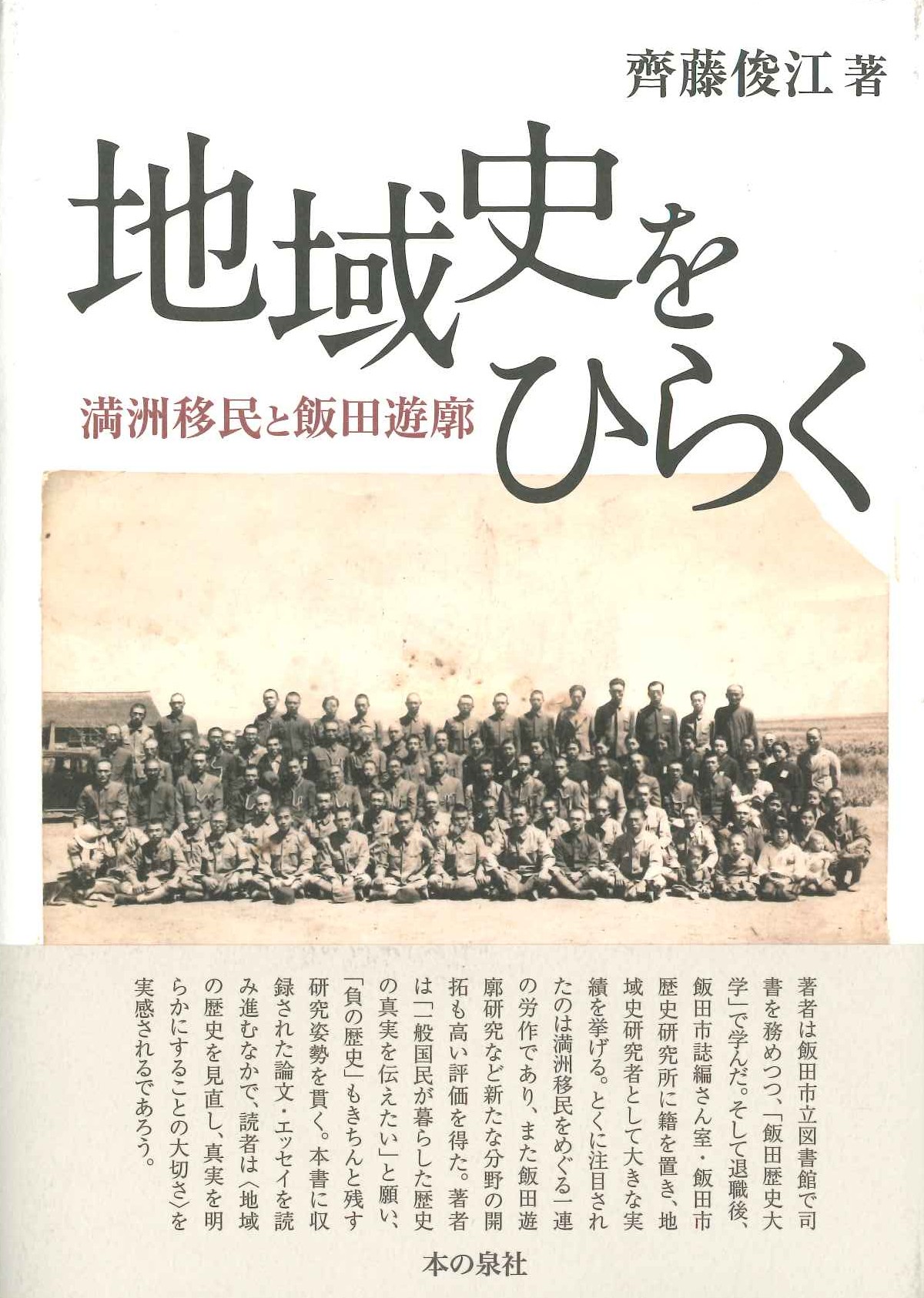 - 著者は飯田市立図書館で司書を務めつつ、「飯田歴史大学」で学んだ。そして退職後、飯田市誌編さん室・飯田市歴史研究所に籍を置き、地域史研究者として大きな実績を挙げる。とくに注目されたのは満洲移民をめぐる一連の労作であり、また飯田遊廓研究など新たな分野の開拓も高い評価を得た。著者は「一般国民が暮らした歴史の真実を伝えたい」と願い、『負の歴史」もきちんと残す研究姿勢を貫く。本書に収録された論文・エッセイを読み進むなかで、読者は〈地域の歴史を見直し、真実を明らかにすることの大切さ〉を実感されるであろう。(帯文より)
