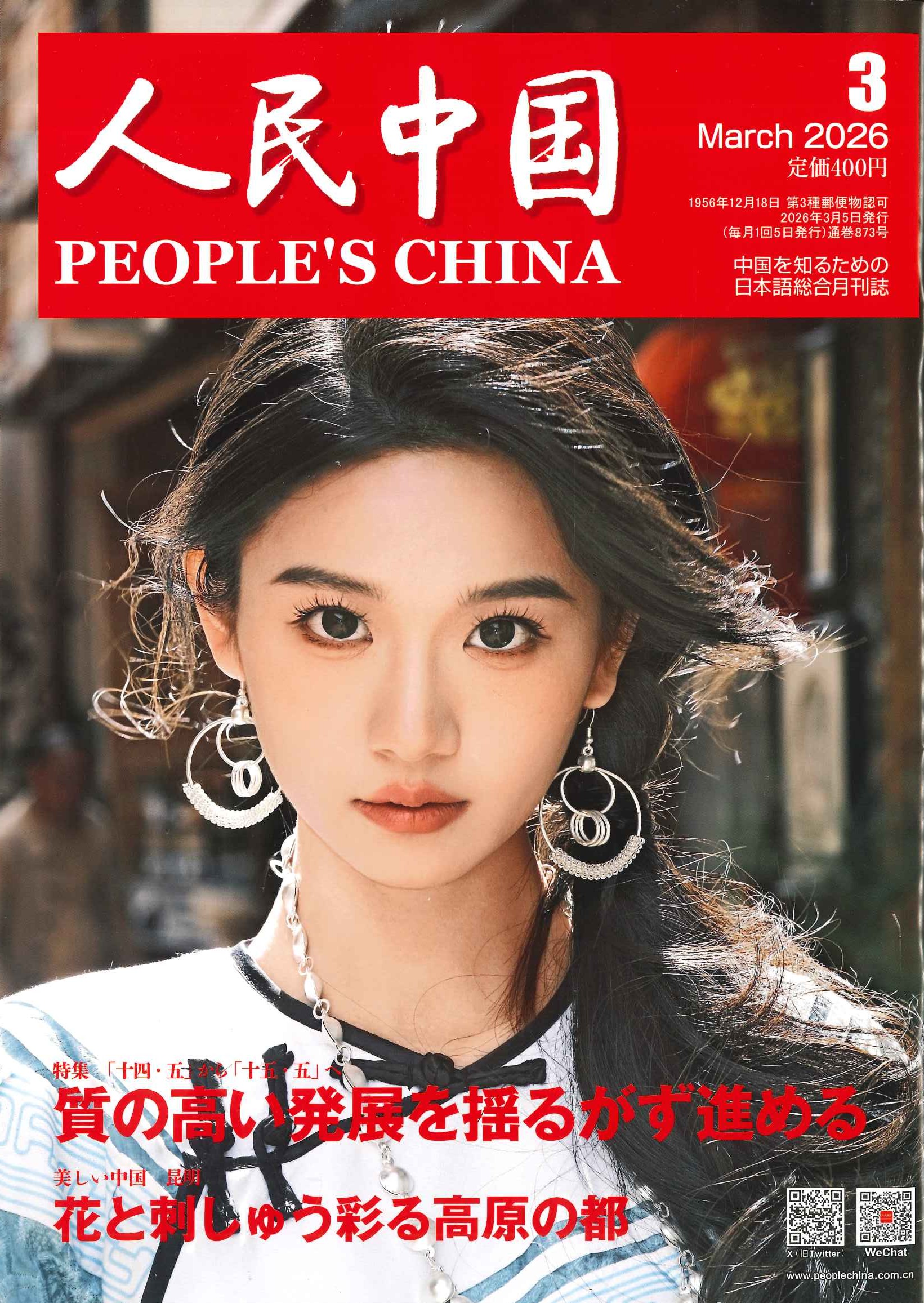 雑誌 人民中国 2026年3月号 注文する 雑誌人民中国 2026年3月号著者人民中国編集委員会出版社人民中国雑誌社出版年月日2026.02価格¥400ISBN番号0449-0312説明※バックナンバーにつきましてはお問い合わせください。 【特集「十四・五」から「十五・五」へ】 質の高い発展を揺るがず進める 【美しい中国 昆明】 花と刺しゅう彩る高原の都